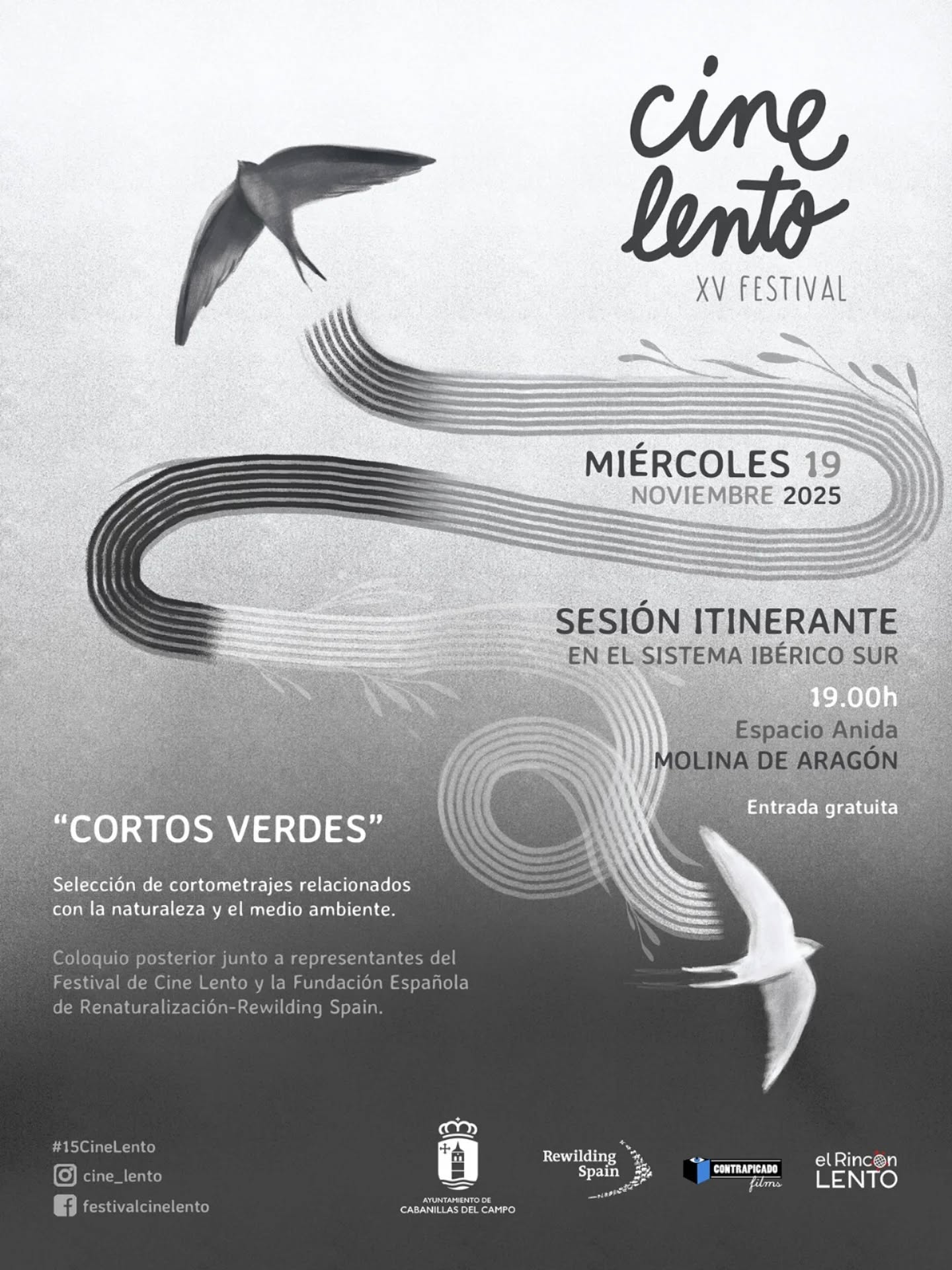 Rewilding Spain colabora con el 15 Festival de Cine Lento, que en esta edición trae hasta el Sistema Ibérico Sur un pase especial de cortometrajes sobre naturaleza y medio ambiente. Esta selección de ‘Cortos verdes’ reúne piezas que muestran cómo el estado de la naturaleza y las interacciones que se producen con ella tienen un impacto en la vida de todos los seres vivos. Después de las proyecciones habrá un debate-coloquio con la intervención de representantes de Rewilding Spain y de la organización del Festival.