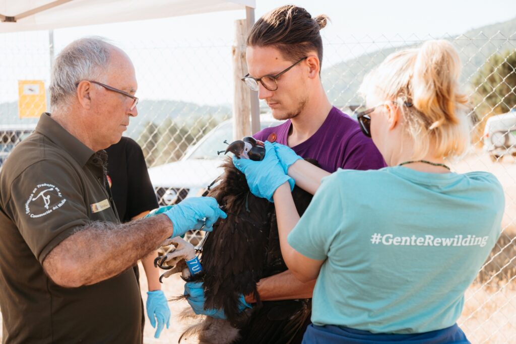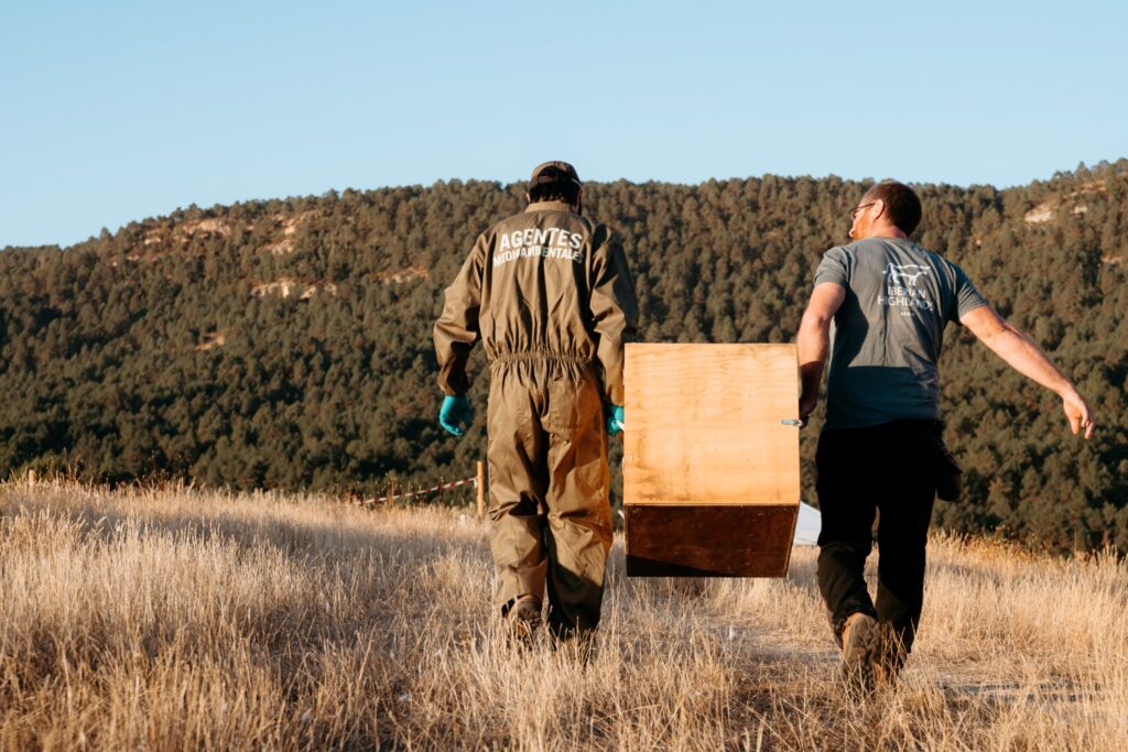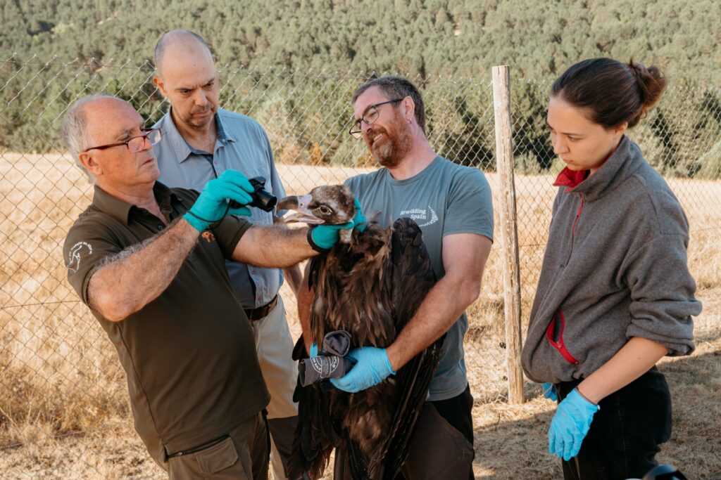 Al igual que en ocasiones anteriores, antes de la suelta, todos los ejemplares fueron equipados con antelación con dispositivos GPS que permiten la monitorización de sus movimientos en tiempo real. Esta tarea de marcaje fue realizada con el apoyo de Víctor García Matarranz, especialista del Ministerio para la Transición Ecológica y el Reto Demográfico (MITECO), y su equipo, y la colaboración de agentes medioambientales de Castilla-La Mancha y voluntarios de Rewilding Spain.