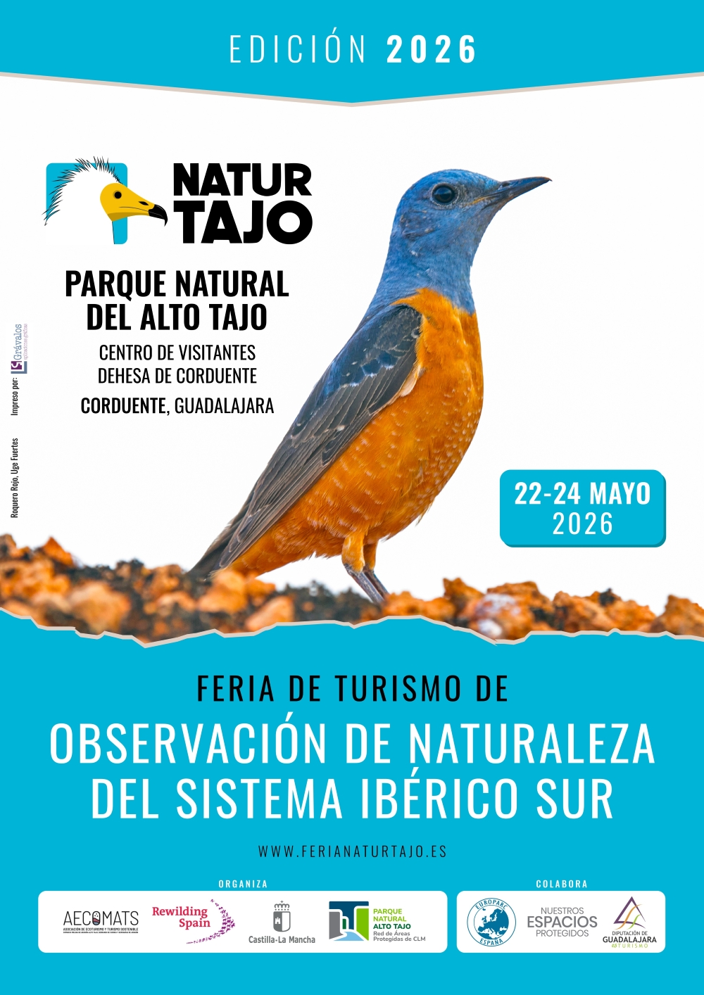 Por tercer año, el Sistema Ibérico Sur reivindicará su lugar como un destino de valor excepcional para los amantes del turismo de naturaleza en Naturtajo, que celebrará una nueva edición en Centro de Visitantes Dehesa de Corduente, una de las zonas más emblemáticas del Parque Natural del Alto Tajo. La feria cuenta con una programación que incluye tres bloques de conferencias, dedicados a gestión de espacios naturales, renaturalización y restauración de la naturaleza con grandes referentes en el tema (sábado mañana); el turismo de naturaleza, con ponencias sobre ornitología y acciones locales vinculadas a los recursos del territorio (sábado tarde), y comunicación y naturaleza, con la participación de influencers y divulgadores a nivel nacional (domingo mañana).